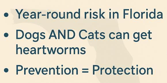 ✅ Bottom Line: Florida pets are at high risk for heartworm disease, but prevention is simple, safe, and affordable. Keeping your pets on monthly preventatives year-round is the best way to ensure they stay heartworm-free.